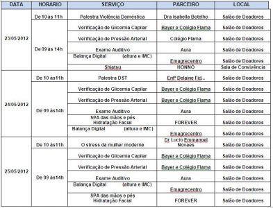 Entre os dias 23 e 25 de maio, das 9 às 14 horas, o Hemorio promove a nona edição da campanha Mulher + Solidária em sua sede, no Centro do Rio. A ação busca alertar o público feminino para a doação voluntária de sangue. Além do tema, o evento conta com outros serviços de informação e saúde para mulher como palestras sobre estresse, doenças sexualmente transmissíveis e violência doméstica, além de serviços gratuitos para saúde e beleza como aferição de pressão arterial, glicemia capilar, índice de massa corporal, shiatsu, hidratação facial e SPA para mãos e pés.